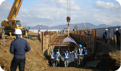 하수의 처리를 위한 기계장치의 설치및 하수관 부설
